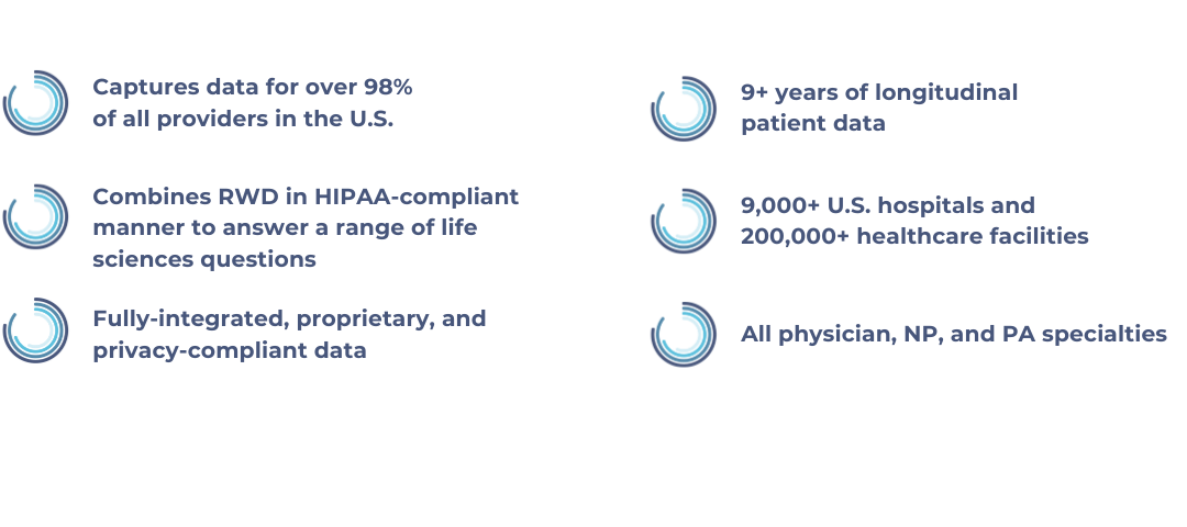 Forian’s hybrid claims data captures national and subnational data on 370M+ patients and 100M+ hybrid patients (with both open and closed claims) and ~4 years of longitudinal follow up.